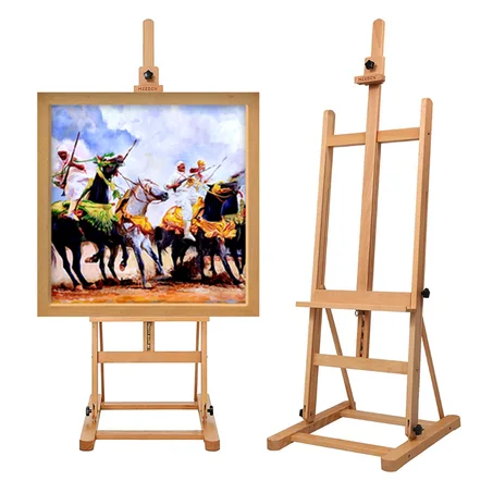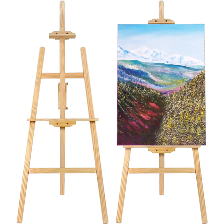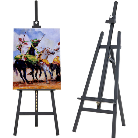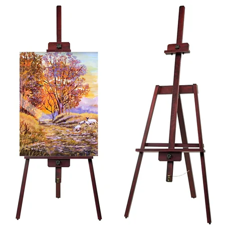 Taille et flexibilité - Chevalet de studio extra large de style Lyre avec cadre en A pouvant être réglé de 62" à 81" de hauteur. Différent du chevalet classique, il peut contenir une toile jusqu'à 50". Selon les besoins des différents clients, nous avons conçu le réglage global de l'angle et le réglage de la partie de la toile. Vous pouvez régler le pied arrière et le bouton supérieur pour atteindre les angles souhaités. |